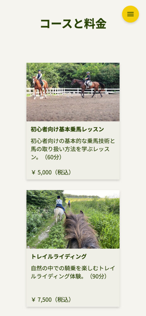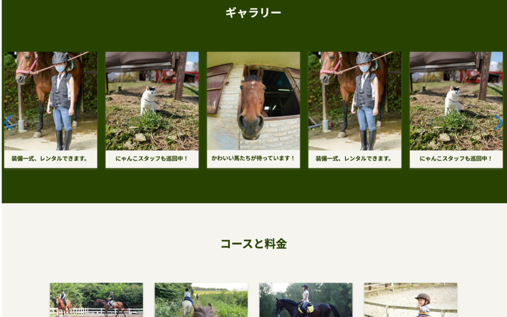 - 元のデザインが牧場のサイトだったことと、学生時代に馬術部にいた経験から、テーマを乗馬クラブとした。